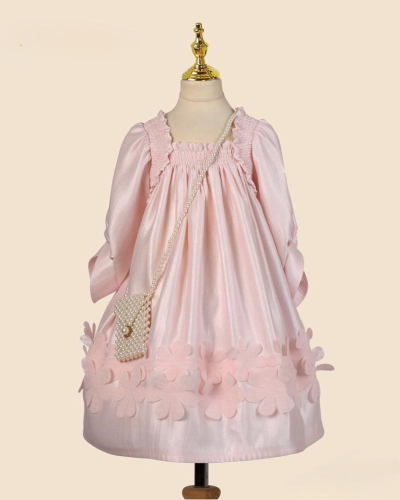 فستان وردي كم طويل + شنطة