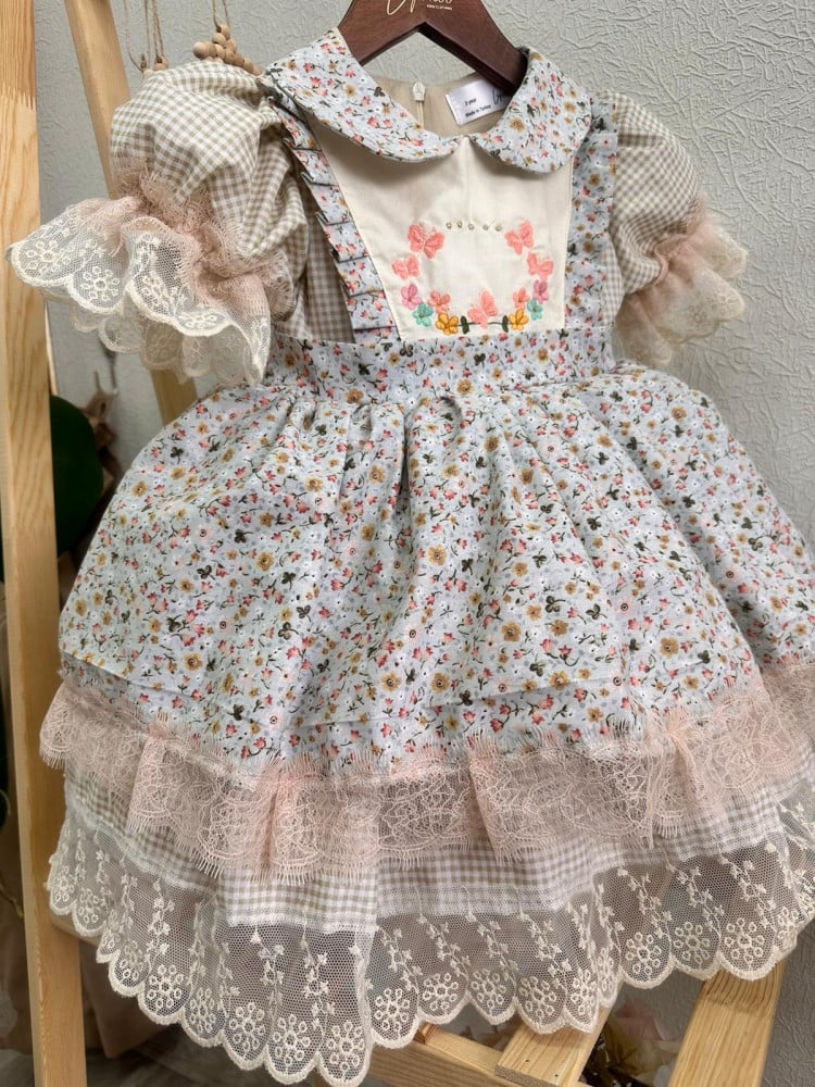 فستان مطرز + اكسسوار شعر ) المقاسات صغي...