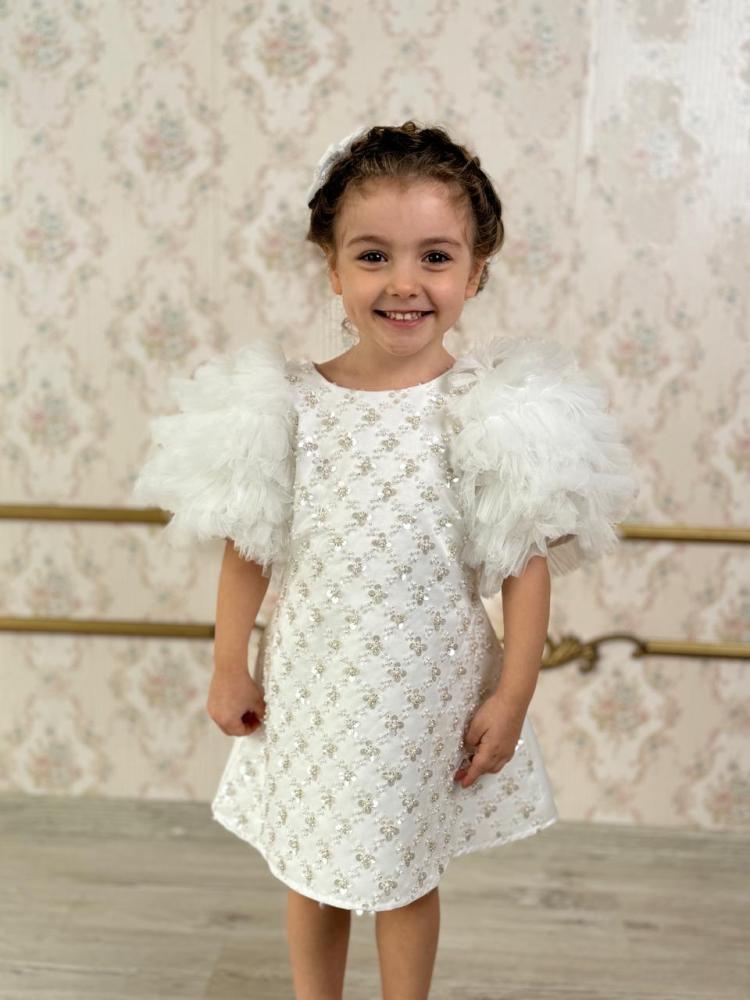 فستان مطرز + اكسسوار شعر ) المقاسات صغيرة عن المعتاد